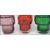 A group of three retro 20th century studio art glass Whitefriars style drunken bricklayer vases of cylindrical form in purple red and green having polished pontil marks. In the manner of Geoffrey Baxter. Measurements: 29 cm high, 18 cm wide and 10 cm deep.