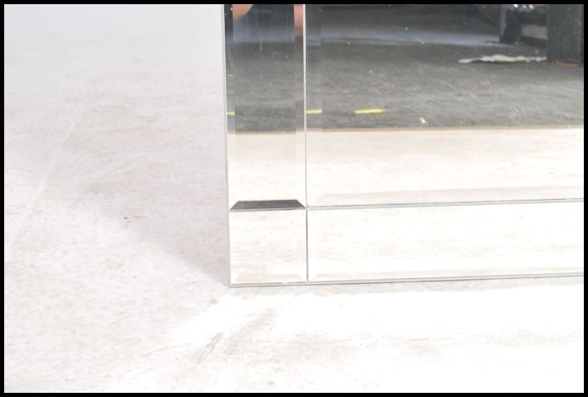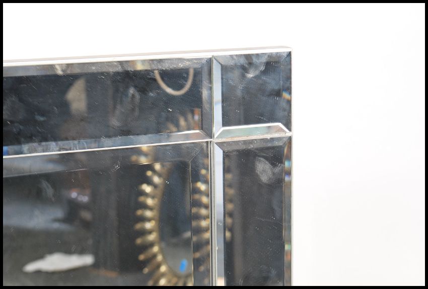 A contemporary Venetian style wall mirror of bevelled edge panel form having hanging string to verso