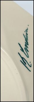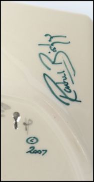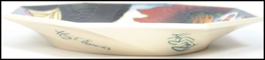 A Moorcroft Designers Medley octagonal plate, tube lined with bird, butterfly and stylised flowers, 24.5cm wide, the verso signed by eight designers, impressed and printed marks, C2007. Complete in original box. Condition Report: In good order with no signs of cracks or repair.