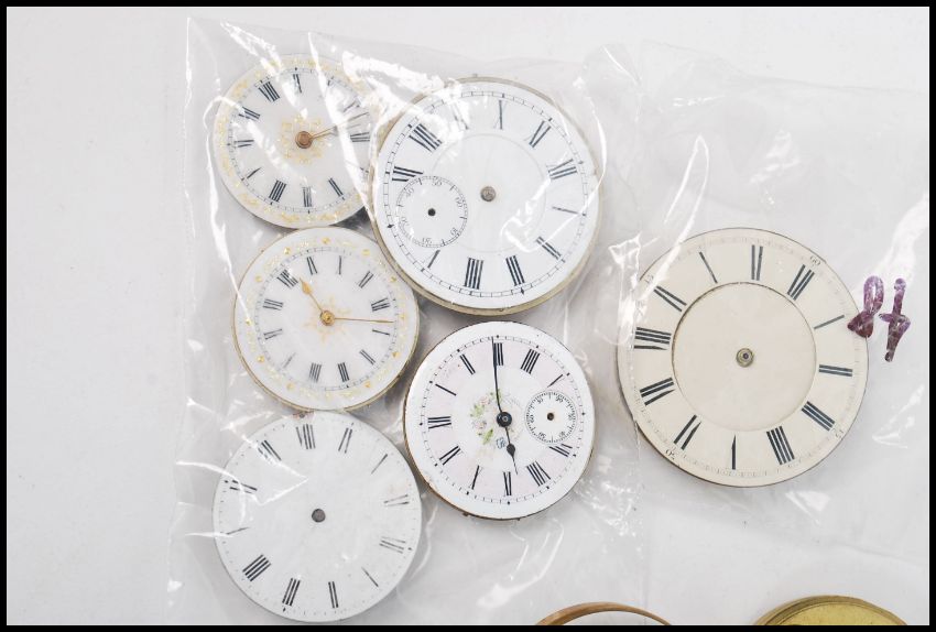A good collection of vintage pocket watch movements, faces and dust covers, various makes please see images.