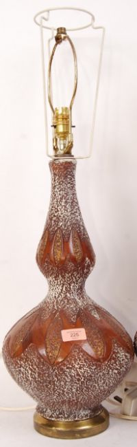 A pair of 1970's West German style ceramic table lamps - lights. Each of stoneglaze studio pottery form, baluster in shape complete with the large shades. 69cms high