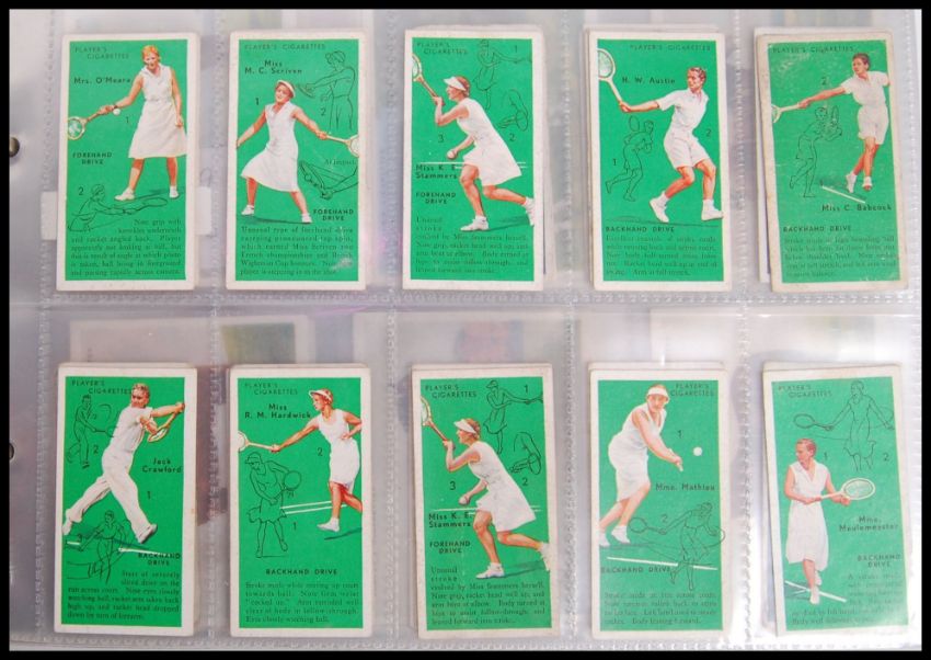 Cigarette Cards: An album of assorted vintage cigarette cards, largely complete sets, some near-complete sets. From a large private collection, including cigarette, cigar and tea cards. This album featuring all Players / John Player & Sons cards. Including; Sea Fishes, Ships Figureheads, Speedway Riders, Straight Line Caricatures, Struggle For Existence, Tennis, Those Pearls Of Heaven, Types Of Horses, Uniforms Of The TA, Victoria Cross, War Decorations & MEdals, Wild Animal Heads, Wild Animals, Wild Birds, Wildfowl, Wonders Of The World, Wrestling & Ju Jitsu, Your Initials, and Zoo Babies.