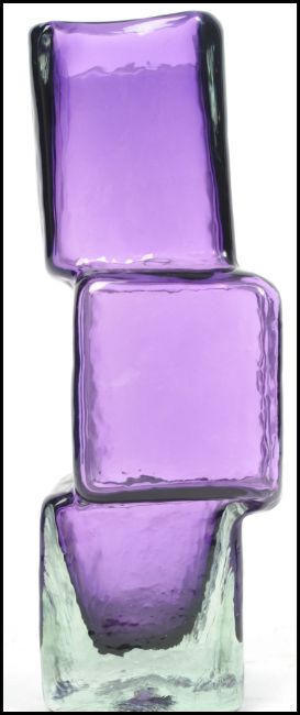 A 20th century vintage retro Whitefriars Geoffrey Baxter style ' drunken bricklayer ' textured vase in a purple colour way. Measurements:  20 cm high, 9 cm wide and 8 cm deep.