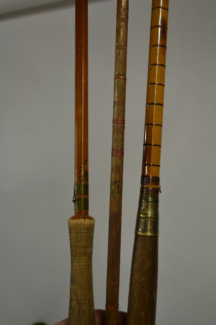 A collection of 3 vintage split cane fly fishing rods, each within original canvas cases to include Sealey, Millwards etc.