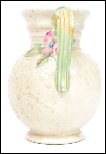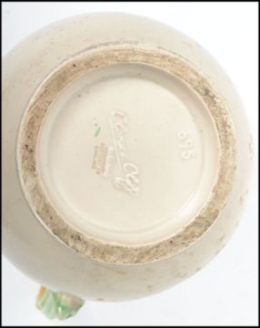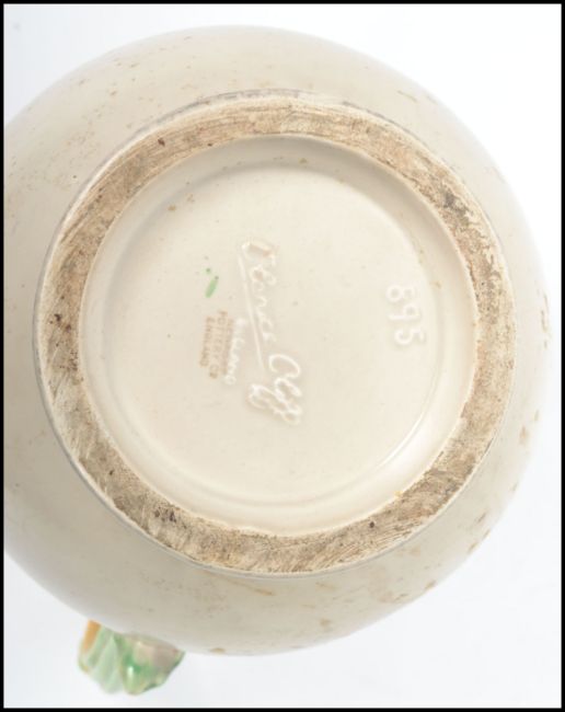 A Clarice Cliff large early 20th century jug with floral vine and spray handle in the ' My Garden ' series. Cast mark for Clarice Cliff model no 895. Measurements:  23 cm high and 22 cm deep.