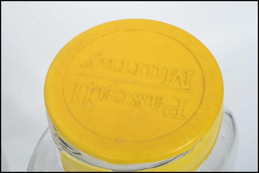 A collection of 5 retro 20th century large glass sweet jars dating from the 20th century, all with screw caps etc. Measures 31 cm high.