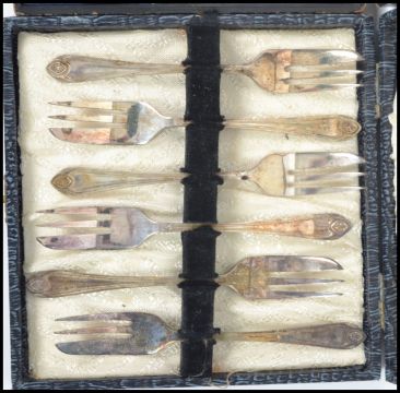 A collection of cased flatware to include dessert forks, fruit knives, tea spoons etc. Widest box measures 20 cm.