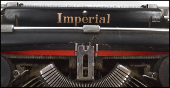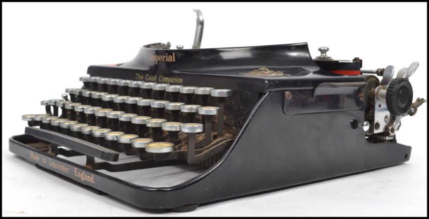 A vintage early 20th century Imperial typewriter of metal construction with ebonised finish, push keys etc. Measures 10 cm high, 31 cm wide and 28 cm deep.