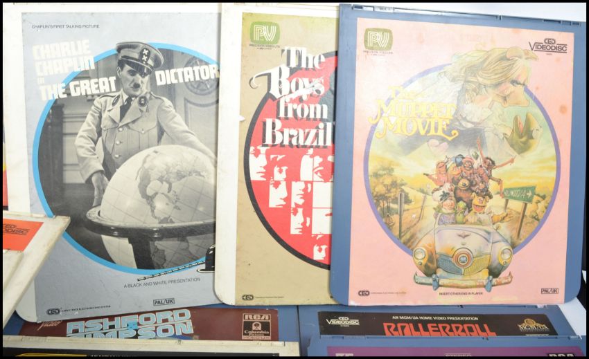GEC McMichael V5001H CED Capacitance Electronic Videodisc / Video Disc  Player complete with a collection of films and music concerts to include Rocky, Carrie, Confessions of a Window Cleaner, Pink Floyd Live at Pompeii and many more. Player measures 12 cm high, 41 cm wide and 42 cm deep.