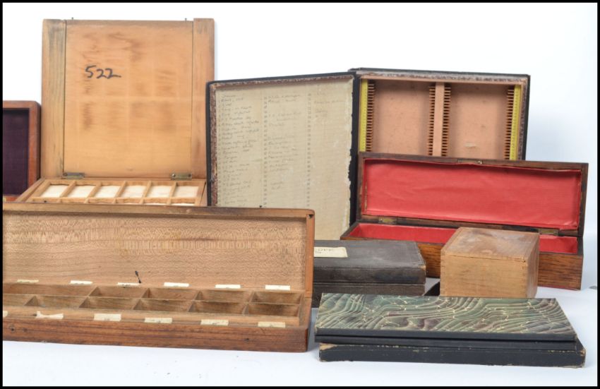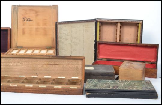 A collection of 19th and 20th century scientific wooden cases to include slide boxes, instrument cases etc please refer to images.