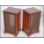 A pair of contemporary mahogany cased speaker hi-fi covers. Each with fabric facia and having plinth bases and flared mahogany tops. Measures: 63cm high x 36cm wide x 31cm deep.
