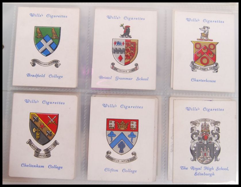 Cigarette Cards: An album of assorted vintage cigarette cards, all complete sets. From a large private collection, including cigarette, cigar and tea cards. This album featuring all Phillips, Typhoo, & Wills cards. Including; Golfing, Heraldic Signs, Arms Of Public Schools, Beautiful Homes, Australian Scenic Series, The Nations Shrines, Dogs, Animals & Their Fur, Sportsmen, Popular Superstitions, Screen Stars, Stars Of Screen, Soldiers Of The King, Bird Paintings, British Birds & Eggs, Empire Industries, Famous Boys, Home Pets, Soccer Stars, Model Railways, Flower Studies etc.