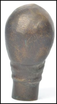 A vintage 20th century novelty gothic walking stick cane top in the form of a skull of bronze / brass metal construction. Measures: 7cm high x 5cm deep x 4cm wide.