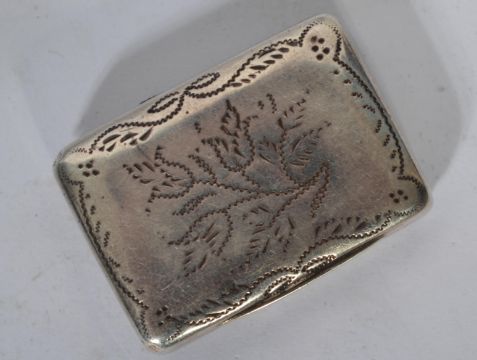 A silver hallmarked part vinaigrette with chased floral decoration and gilt opening pierced panel. Hallmarked for Birmingham 1834 makers Thomas Shaw / Smith / Simpson Jr (T.S.) One side missing AF, weighs 13.9 grams.