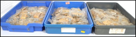A collection of 3 trays of furniture cabinet locks, in the original packaging and constructed from brass