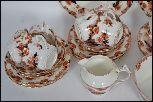 A late 19th early 20th century Royal Albert bone China twelve person tea service in an Imari style pattern consisting of trios, creamer, sugar bowl etc