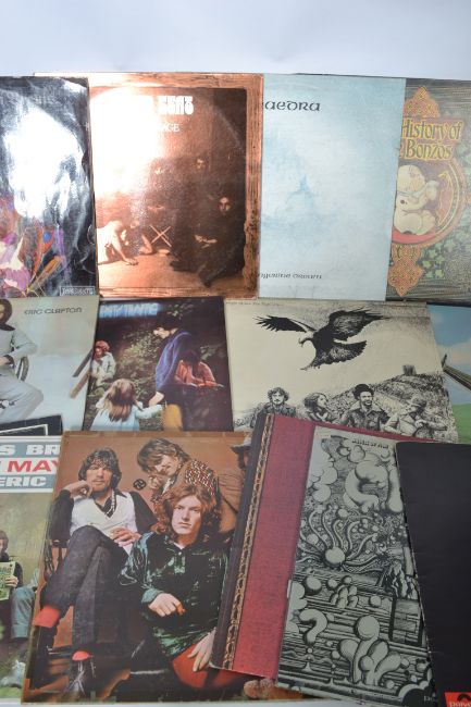 A collection of vinyl long play LP record albums to include Hatfield And The North - The Rotters Club, The History Of |The Bonzos, Tangerine Dream - Phaeora, Canned Heat - The New Age, The Nice - Nice and Mrs Longa Vita Brevis, Family - New Songs Old Songs, Blues Breakers - John Mayall With Eric Clapton, Traffic - Traffic, Last Exit, When The Eagle Flies, Cream - Wheels On Fire, Goodbye Cream and Blind Faith.