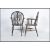 A pair of mid century beech and elm wood wheelback dining chairs being raised on turned legs united by stretchers having elm saddle seats, shaped elbow supports with wheelback rests. Measures: 99cm high x 56cm wide x 56cm deep.