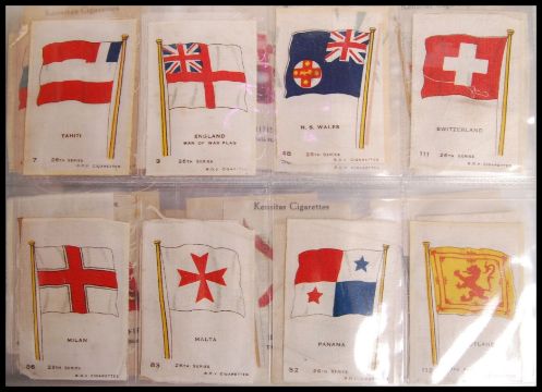 Cigarette Cards: An album of assorted vintage cigarette cards, mostly appearing complete sets. From a large private collection, including cigarette, cigar and tea cards. This album featuring all Silks, Hills & Cavenders cards. Including; The Homeland Series, Foreign Birds, Sports Of Great Britain, Peeps Into Many Lands, Peeps Into Prehistoric Times, Who's Who In British Films, Music Hall Celebrities, Own Empire, Views Of London, Public Schools, River Thames, Famous Film Stars, The Railway Centenary, Kensitas Silks and others.