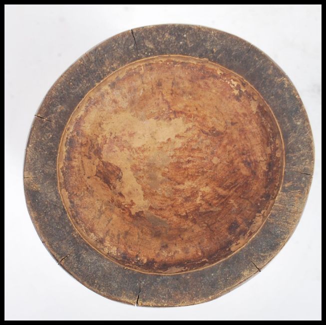 A 19th century carved wooden brush pot of cylindrical form having a carved decoration depicting scenes of boats and trees. Measures 32 cm high.