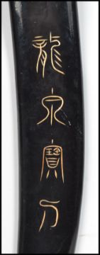 A 20th century Oriental decorative dress sword of large form having banded handle with brass bound sheath. Measures: 94cm long.