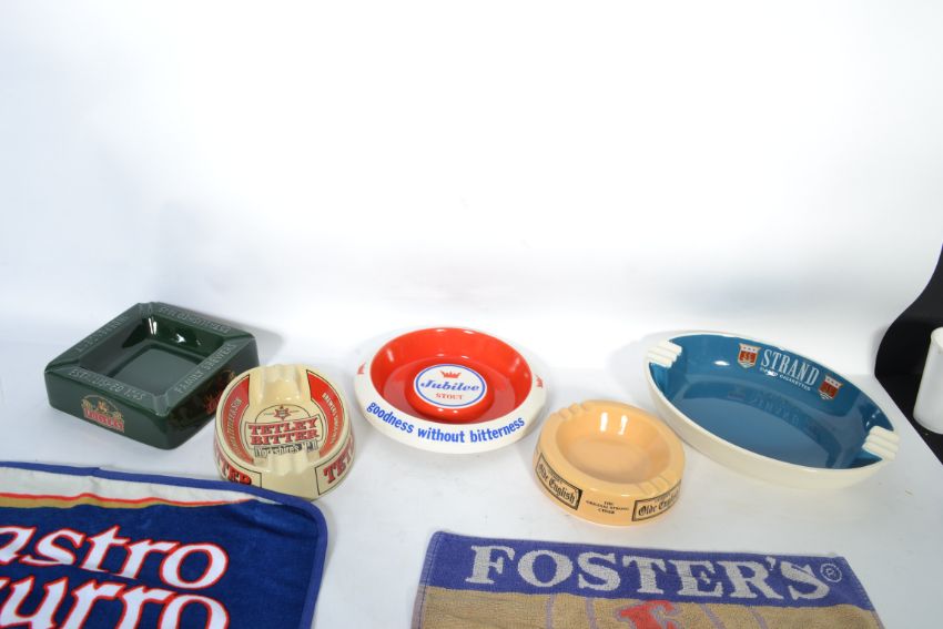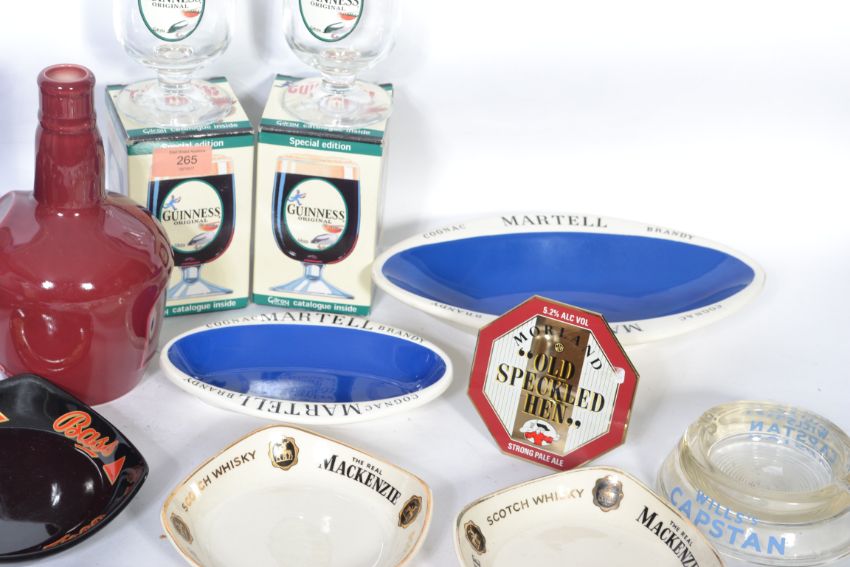 A collection of breweriana items to include advertising ashtrays such as Martell ( Bristol marks ), limited edition Guinness glasses etc please refer to images.