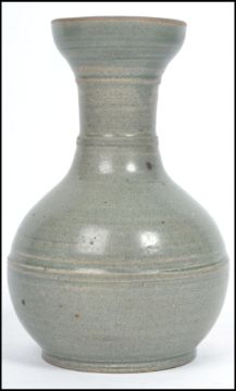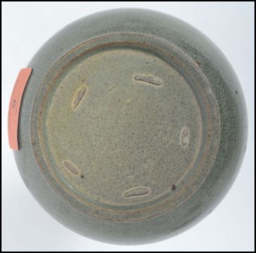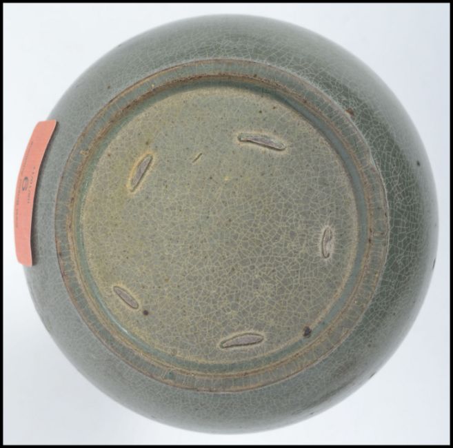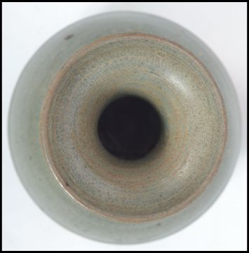 An early 20th century Chinese green crackle glaze bulbous vase with waisted neck and trumpet collar being unsigned. Measures 17 cm high.