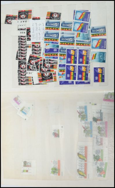South African Stamps, a stock book containing many collectors duplicates, mostly pairs and blocks mint and used, good thematic content. Album measures 32 cm high and 26 cm wide.