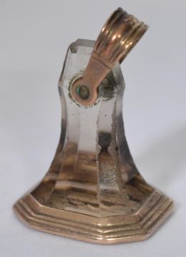 An 18th / 19th century gold ( tests as 9ct ) intaglio seal with seal of fox hunting interest and notation ' Gone Away ' The seal with yellow metal bale over cut glass seal with gold 9ct banded edge