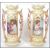 A pair of 19th century Victorian continental vases having gild twin handles with flared rims and cartouche panels depicting children. Measurements: 28 cm high, 15 cm wide and 10 cm deep.
