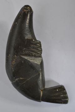 An early 20th century Inuit soapstone carving of a seal.