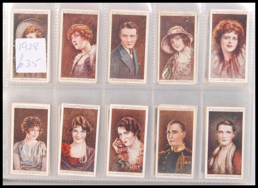 Cigarette Cards: An album of assorted vintage cigarette cards, all complete sets. From a large private collection, including cigarette, cigar and tea cards. This album featuring all Wills cards. Including sets: Britains Part In The War, British Birds, British Butterflies, Celebrated Ships, Cinema Stars, Cricketers 1928, Cricketers, Dogs, Do You Know?, Do You Know? Engineering Wonders, English Period Costumes, Famous Inventions, and First Aid.