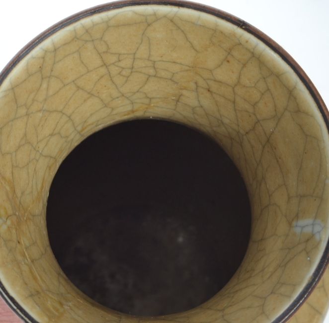 An early 20th century crackle glazed Oriental Chinese Ceramic vase having a waisted neck with flared rims and lion mask handles.