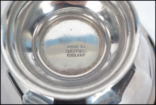 A four piece matching silver plated mid 20th century tea service to include teapot, water pot, sugar bowl and creamer, stamped to base.