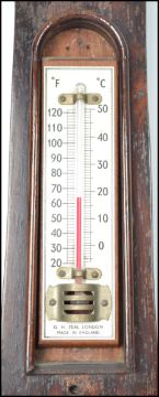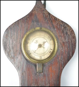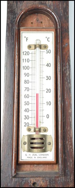 A 19th century Georgian banjo barometer having silvered dial with thermometer having mercury back with door. Measures: 95cm high x 6cm deep x 26cm wide.