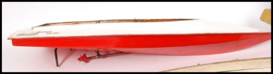 A collection of 3x vintage 20th century model boats to include; tin speed boat, wooden model boat & sailing ship.