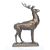 A vintage 20th century cast iron figurine of a adult reindeer with detailed features raised on a naturalistic plinth base.