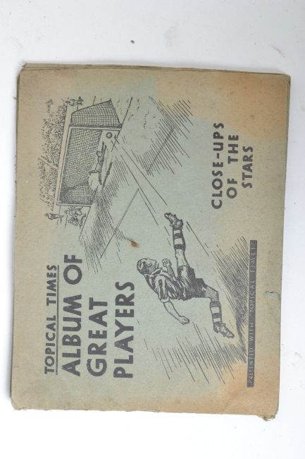 A 'Topical Times Panel Portrait Album of Star Footballers' containing a complete set of twenty-four / 24 cards, to include Leeds United, Grimsby Town, Stoke City, Sunderland, Arsenal, Manchester United and Huddersfield Town football club players