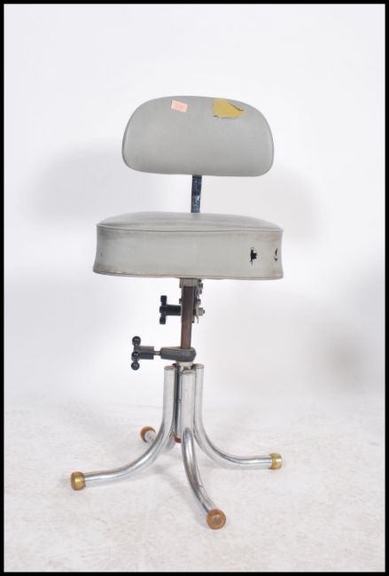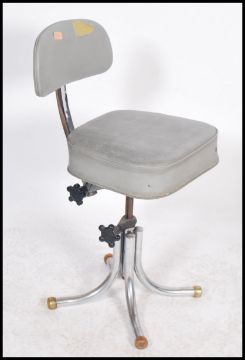 A vintage 20th century retro industrial office swivel chair in the manner of Tansad raised on a quadruped adjustable swivel base. Measures: 87cm high x 53cm wide x 38cm deep.
