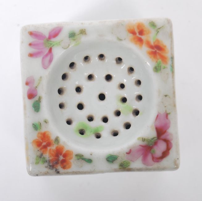 A believed 19th century Oriental ceramic Guangxu famille butterfly pattern incense burner? of cube form. Measurements: 6 cm high, 5 cm wide and 5 cm deep.
