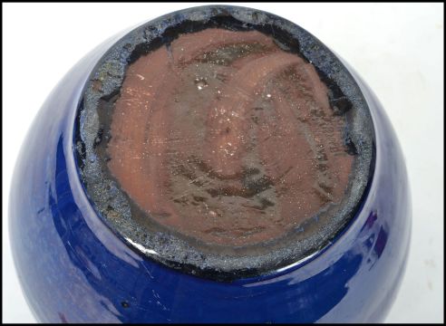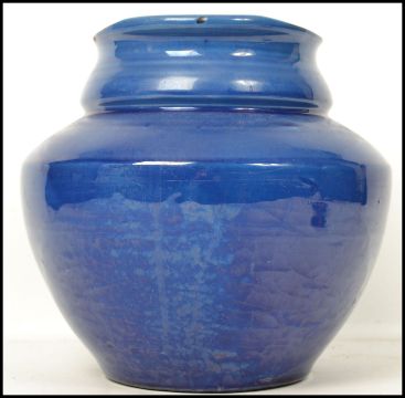 A large CH Brannam, Barum N Devon, large studio pottery dairy jug finished in a rich blue glaze, impressed stamp to base. Measures:  20cm high x 28cm deep x 21cm wide.