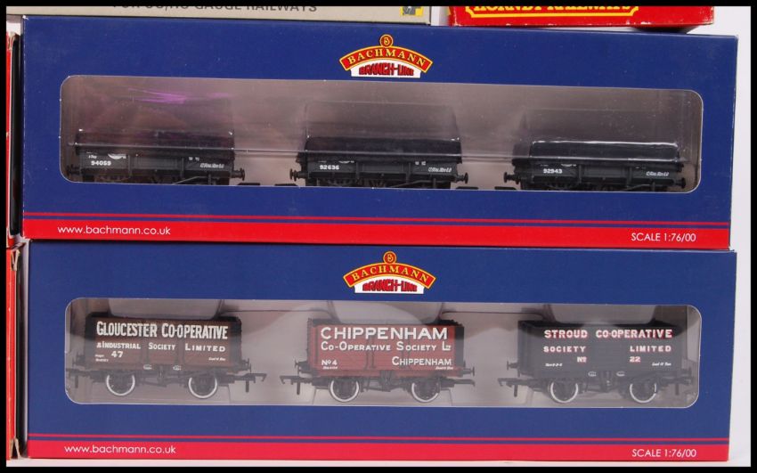 A collection of 8x assorted Hornby, Bachmann & Lima 00 gauge wagons & rolling stock to include; 33-090 Clay Wagons, 37-076x Private Owner Wagons, R.125 Twin Silo Wagon, R.670 6 wheel Palethorpes & others. All within their original boxes.