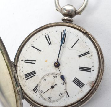 A silver early 20th century pocket watch by John Walker, Strand, London. Open faced with key wind, the case marked for fine silver