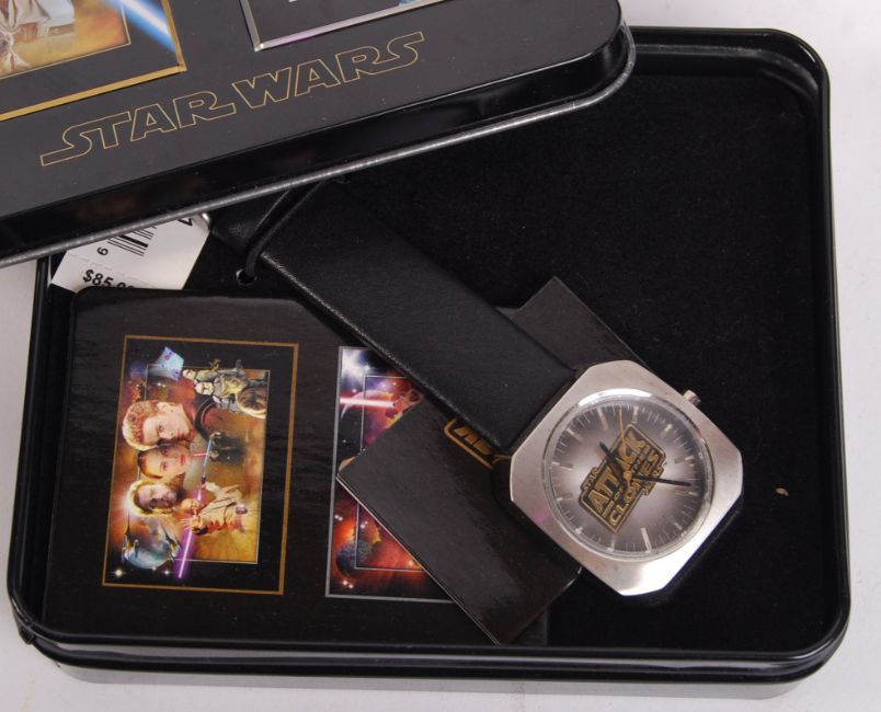 A collection of assorted Star Wars wrist watches, comprising of; Hope Trilogy Movie Poster Timepiece (with box), Fossil made Attack Of The Clones watch in limited edition tin (as new), a Fantasma Limited Edition Star Wars watch, various loose and others.