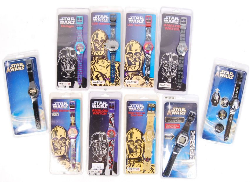 A collection of 10x assorted Star Wars wrist watches. All 1990's issued, factory sealed and unused. To include Digital and Analogue watches. Mostly made by Watchit, but also some Fanclub Zeon issued. All unused, as new.