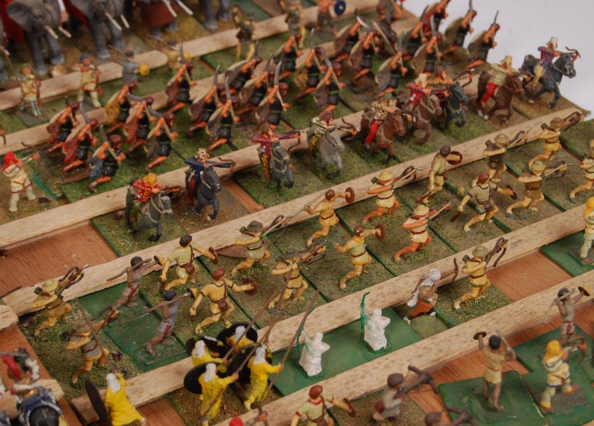 A huge collection of assorted 25mm white metal museum-quality painted soldiers / figures. Various ages, and regiments. To include Vikings, Indian, Napoleonic, Cavalry, French, Swiss, German and many others. Complete contents of a collectors cabinet. 5x trays of assorted figures. Likely 600+ assorted figures, most painted to a very high standard. Cabinet included.  UK Postage on this item will be £29.99+VAT (cabinet not included if posting)