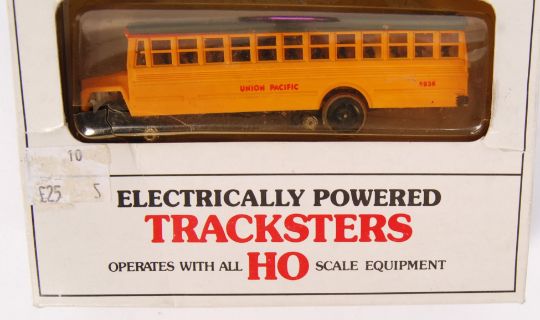 An original Bachaman H0 gauge Electrically Powered Tracksters 46-1233 yellow crew bus. Within the original box.