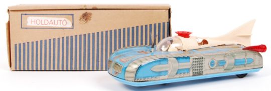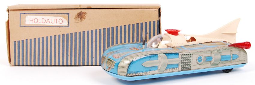 A rare vintage c1960's / 1970's Russian made tinplate battery operated ' Interkozmosz ' Space Craft vehicle. In superb unused mint condition. Comes complete with the dual-language (German & English) instructions sheet, and the original polystyrene ball (still in its paper bag). The outer box being very good, with the upper paper label still attached. Rare in this condition.