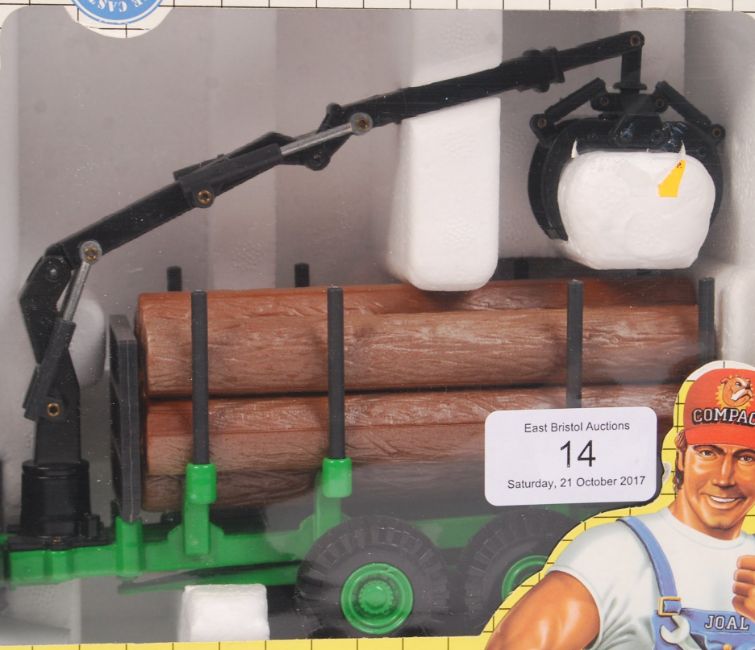A vintage Joal Compact precision diecast 1:32 scale model No. 254 Valmet 8400 Tracot and log trailer. Appears mint+, within the original display box. Highly detailed model. Note: from an extensive private collection of Joal and other construction related diecast models. All boxed models are generally mint to mint+ (unless specified). Most are unremoved from their original boxes. Buyers are reminded to satisfy themeselves as to condition of individual lots, as some, will vary.
