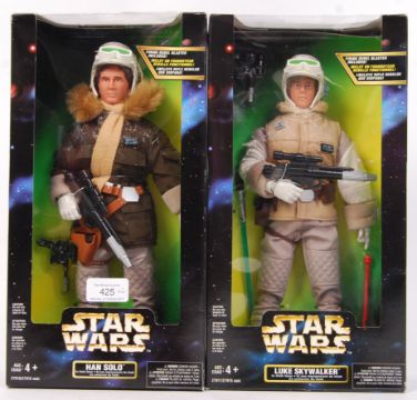 Two Kenner made Star Wars 12" action figures - Han Solo in Hoth Gear and Luke Skywalker in Hoth Gear. Both factory sealed, and unused. Contents mint.